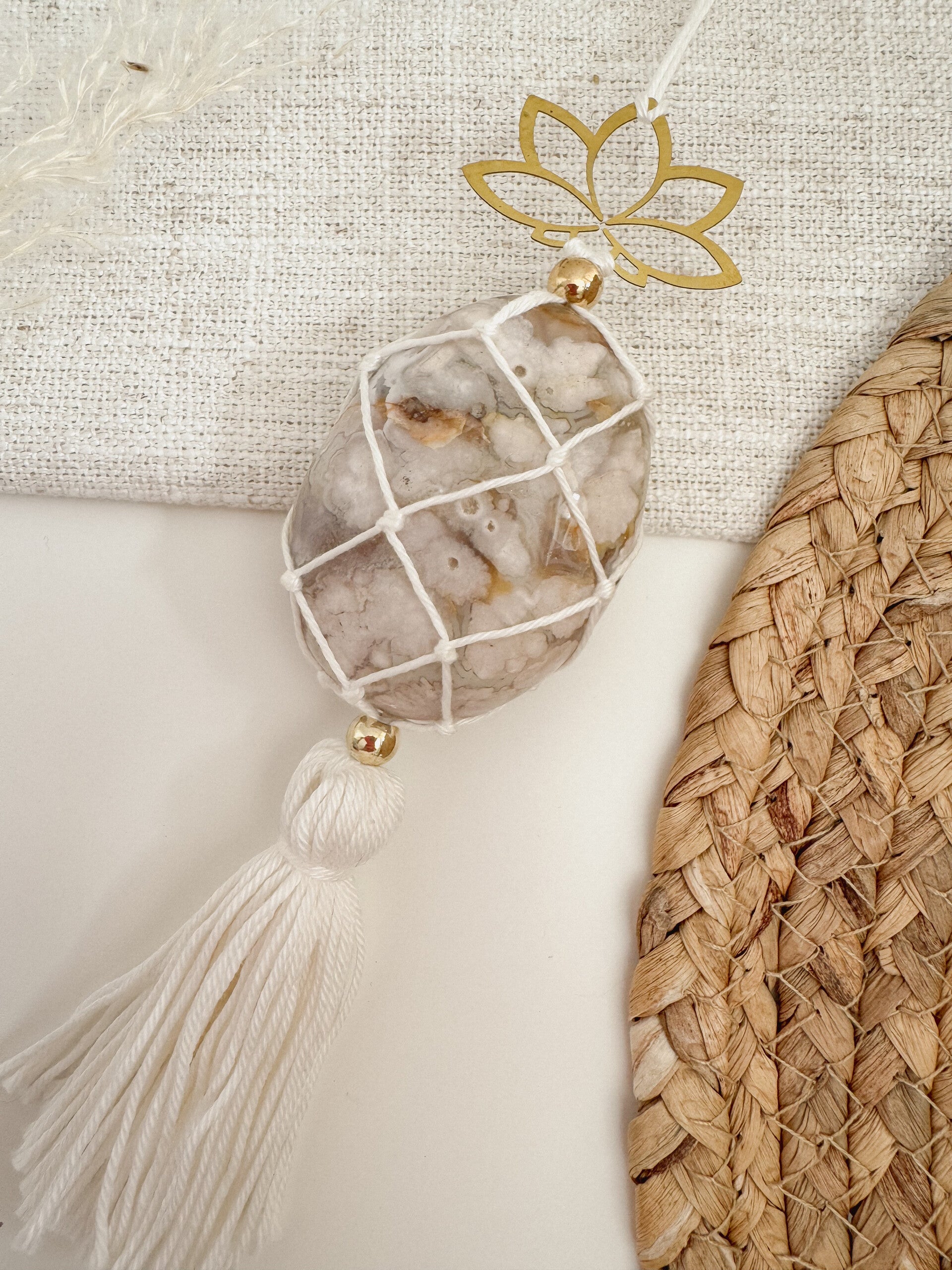 Deze hanger met bloemagaat brengt een rustige, aardse energie die helpt om balans en stabiliteit te ervaren. Ideaal voor vrouwen die met beide benen op de grond staan en hun praktijkruimte willen vullen met een heldere en ondersteunende sfeer.