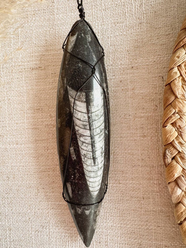 Breng de kracht van de natuur en prehistorie in je huis met deze prachtige Orthoceras hanger, die een prachtige balans van geschiedenis en esthetiek biedt.
