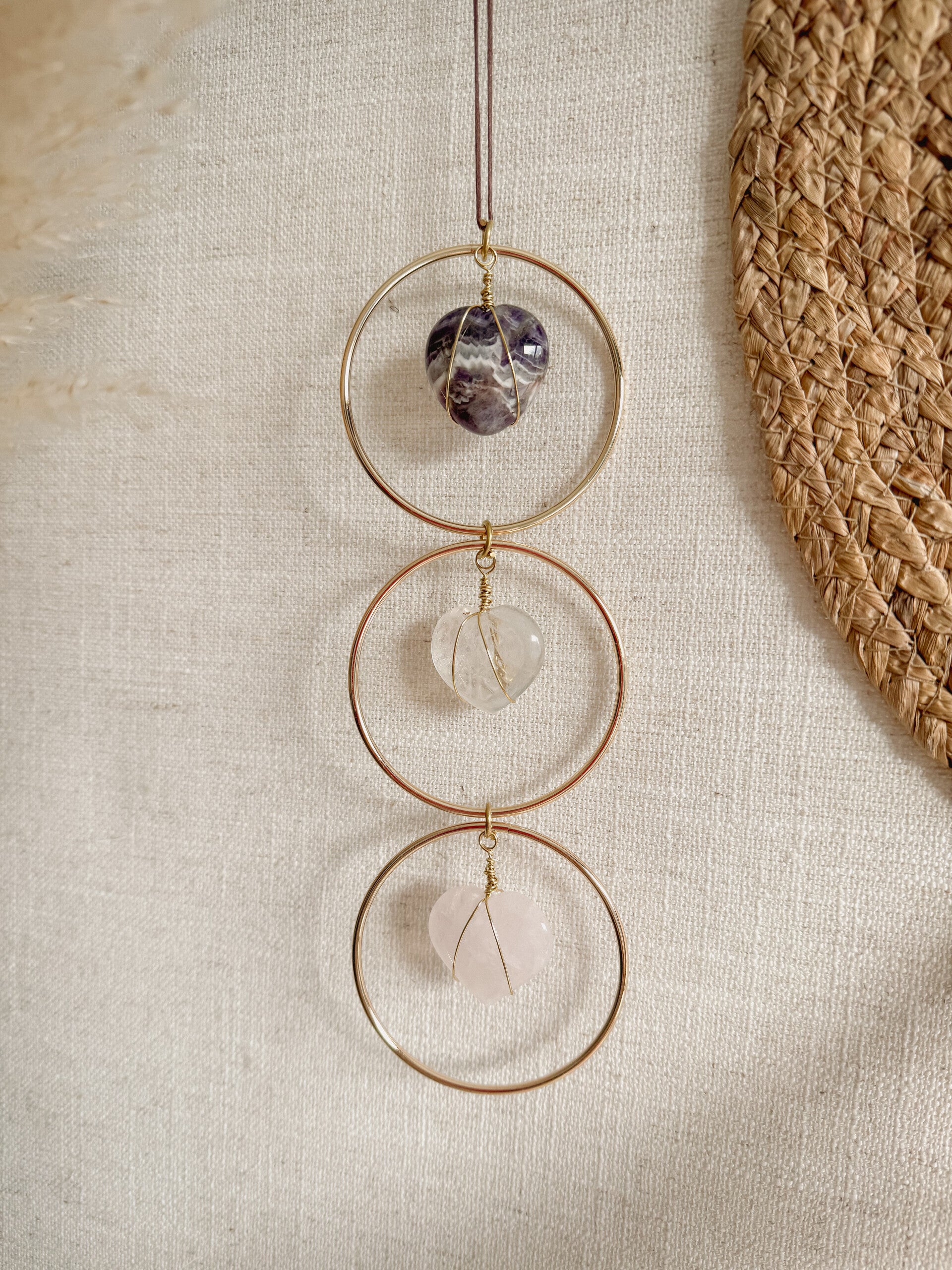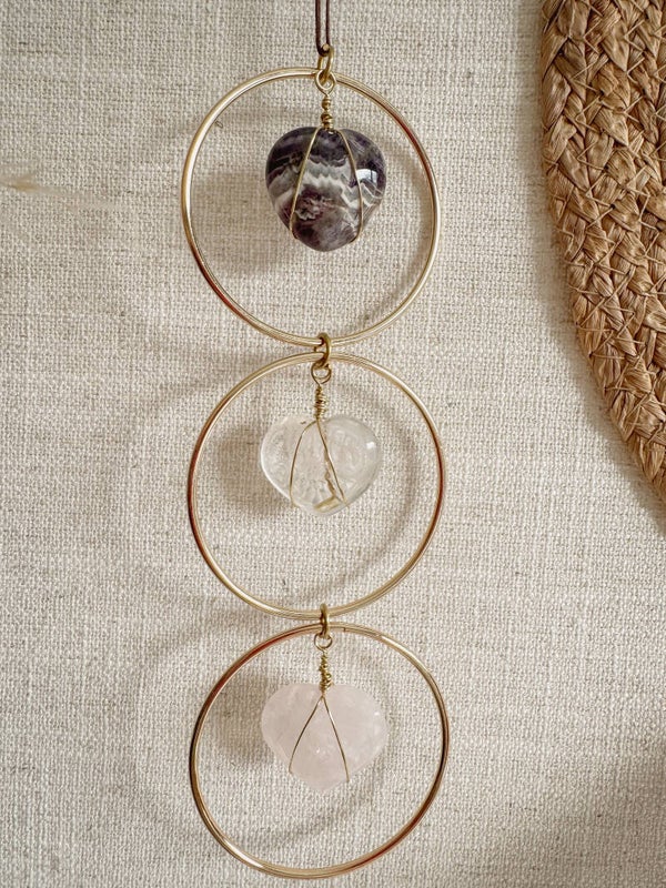 Deze hanger ondersteunt je om aanwezig te blijven in jouw eigen energie, zelfs op volle dagen. Hang hem op een plek waar jij afgestemd wilt blijven: boven je behandeltafel, in je meditatiehoek of bij de ingang van je praktijkruimte.